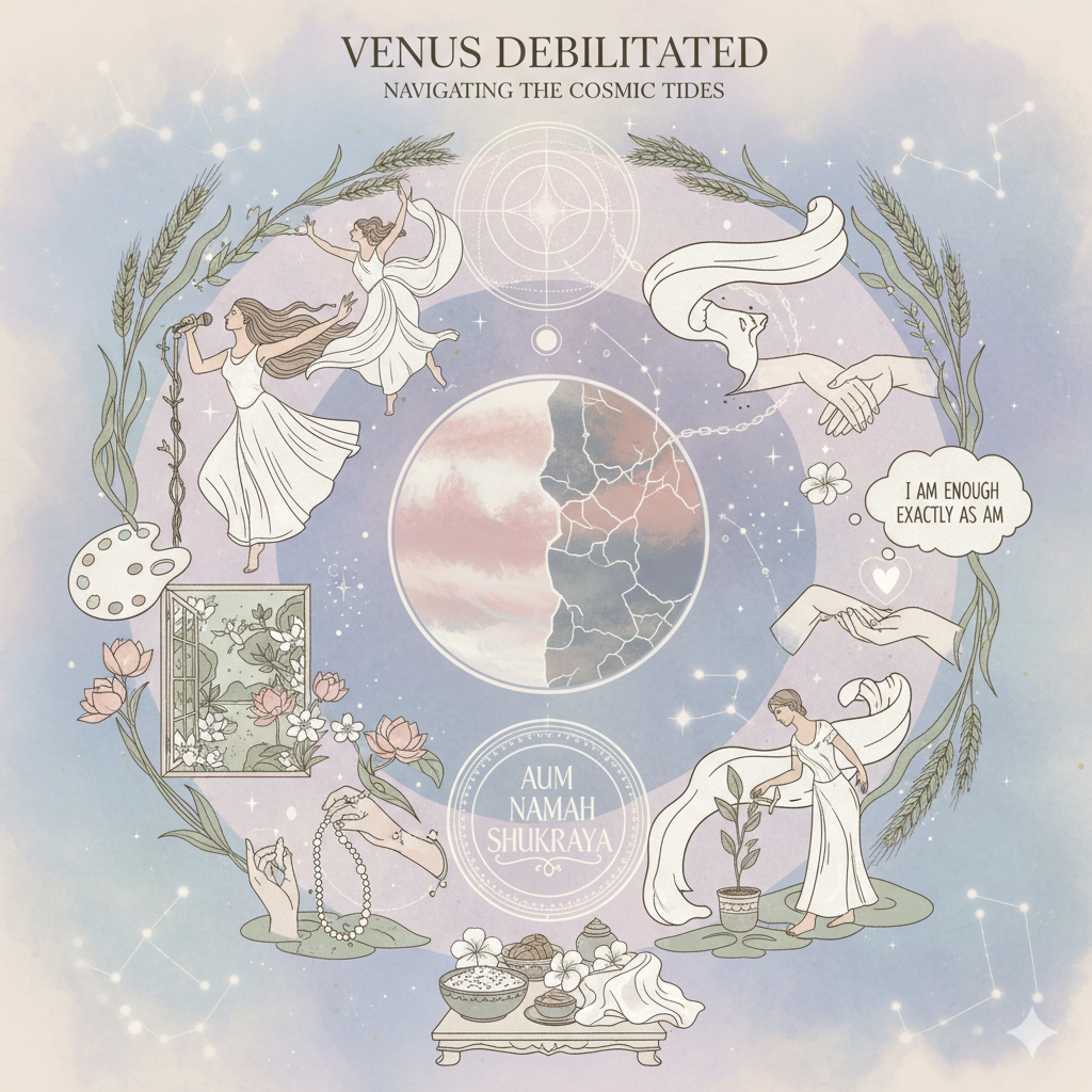 Remember: debilitated planets are our teachers. They show us where we have extra work to do, where our past-life karma has left lessons unlearned. Rather than fear this transit, embrace it as an opportunity to finally get Venus right—to learn how to love without losing yourself in criticism, to enjoy without demanding perfection, to experience pleasure without guilt.