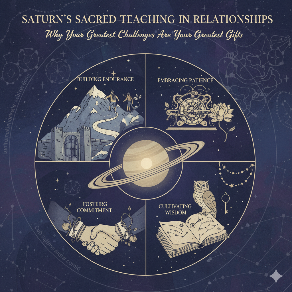 I like to explain Saturn as the master craftsman of the spiritual world. Just as a master carpenter doesn’t hand you a finished piece of furniture but teaches you to build it yourself through patient practice, Saturn doesn’t give you perfect relationships. Instead, it provides the exact challenges you need to develop the skills that create partnership mastery.